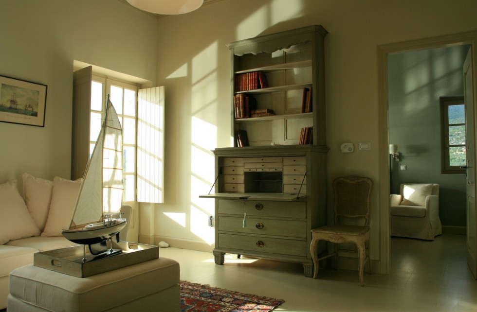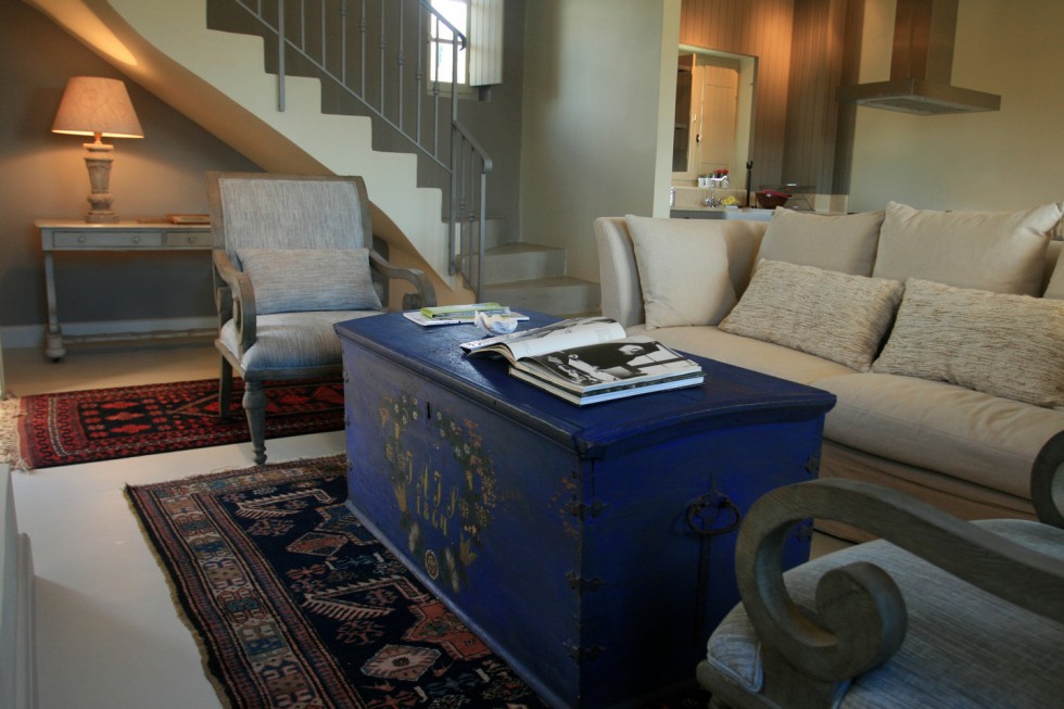 Και τα δύο σπίτια είναι επιπλωμένα με παλαιά έπιπλα περασμένων εποχών, που έχουν έλθει από όλο τον κόσμο. Θα δείτε αυθεντικά του 19ου αιώνα, προικο-σέντουκα από την Σουηδία και βιβλιοθήκη από Γερμανικό πύργο, τραπέζι πρωινού πλυσίματος και απλίκες από την Αγγλία, χαλιά νομάδων από τα βουνά της Περσίας, γκραβούρες από Γαλλικό πύργο, πανό και έπιπλα ζωγραφισμένα στο χέρι, από αγροικίες στο Βέλγιο & Γαλλία, πίνακες με αγριολούλουδα από την Ολλανδία, μπλε βάζα στυλ Kangxi από την Κίνα...