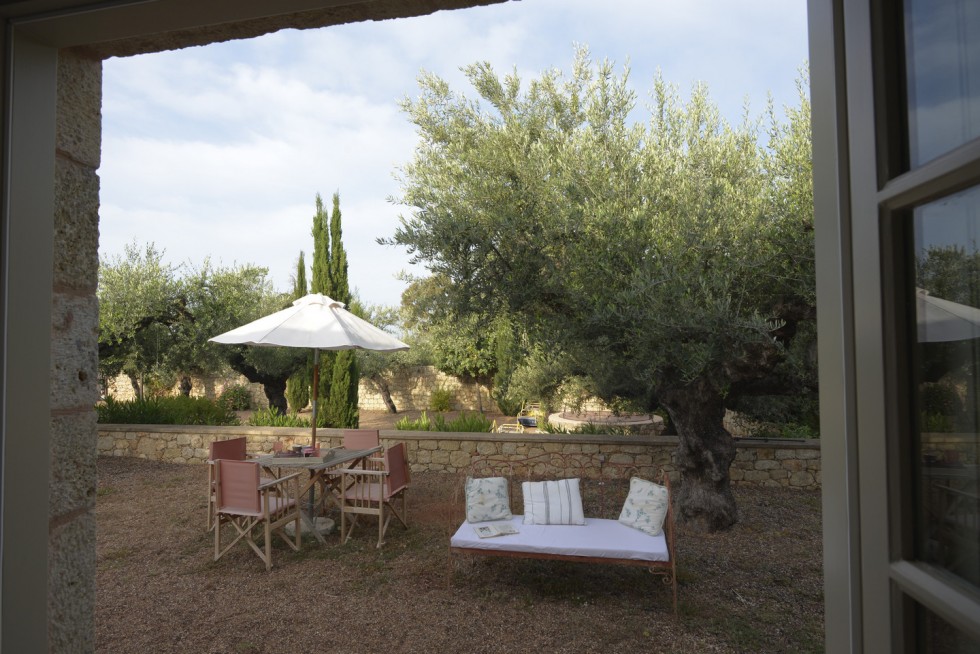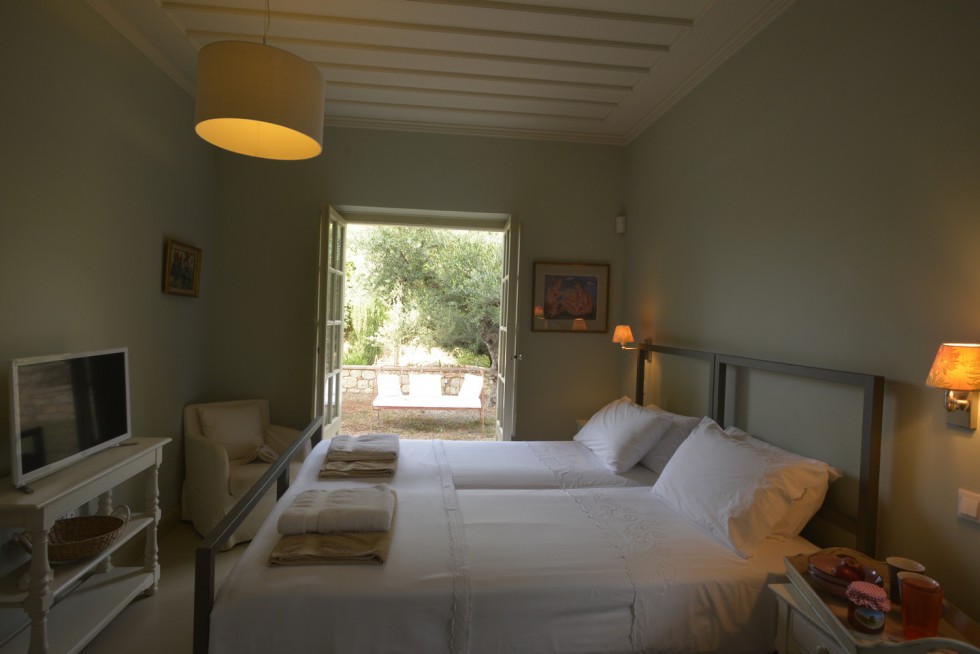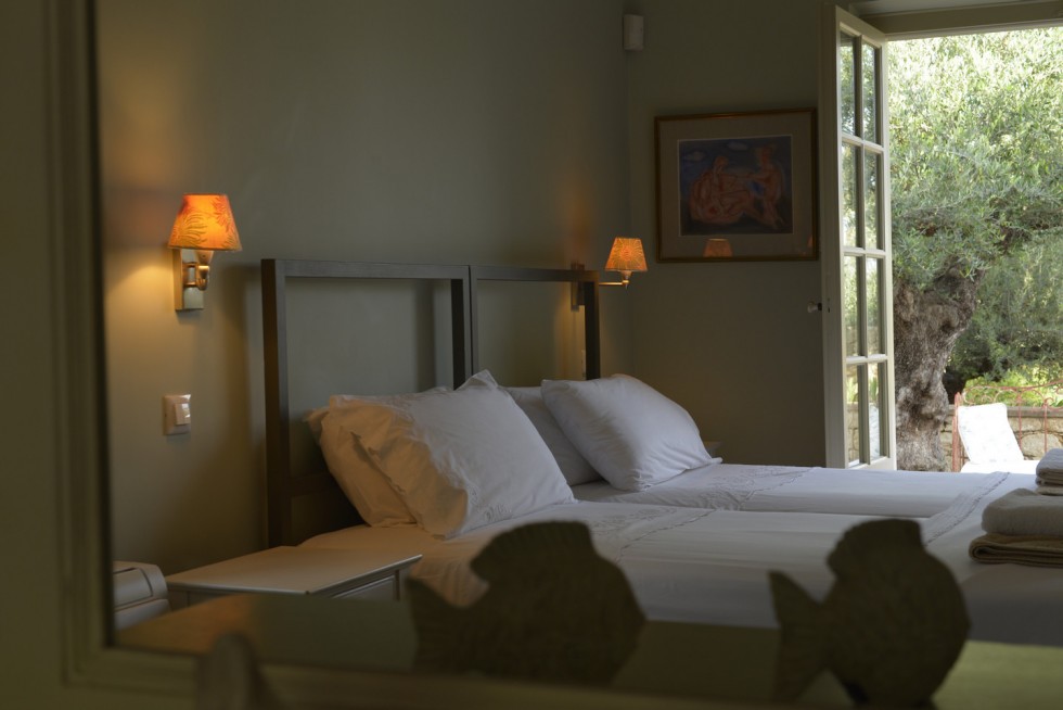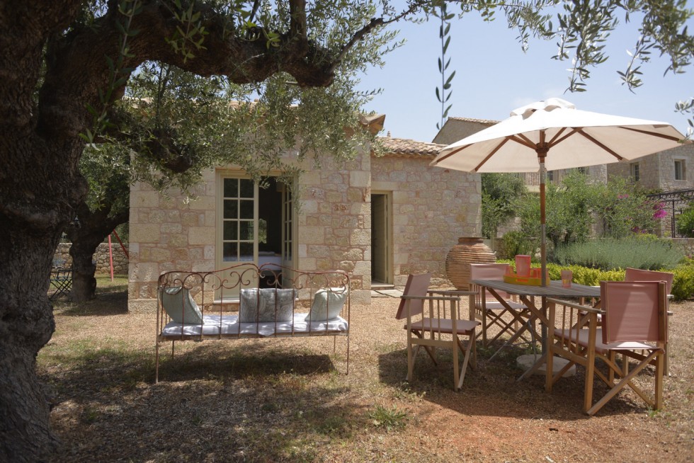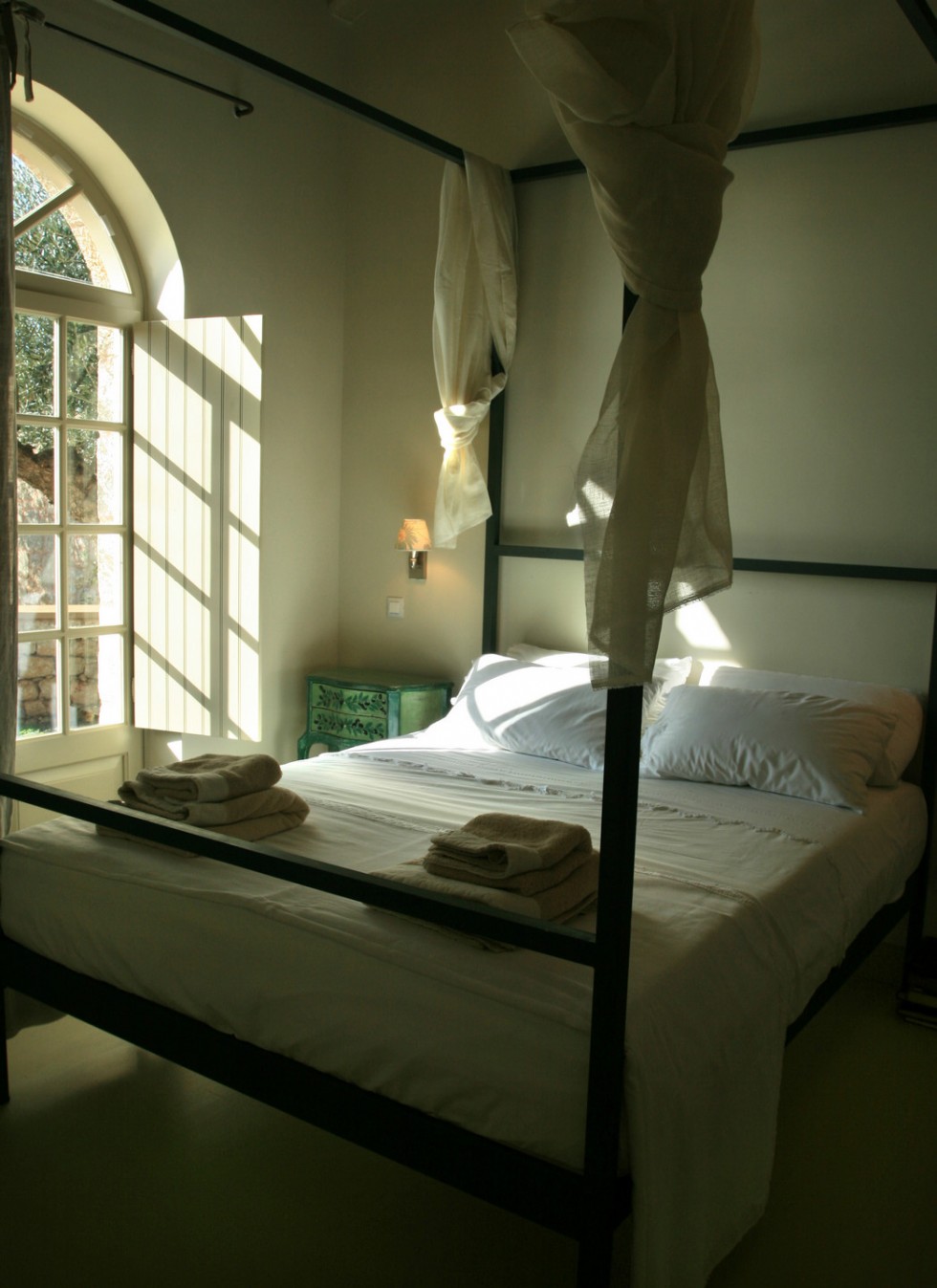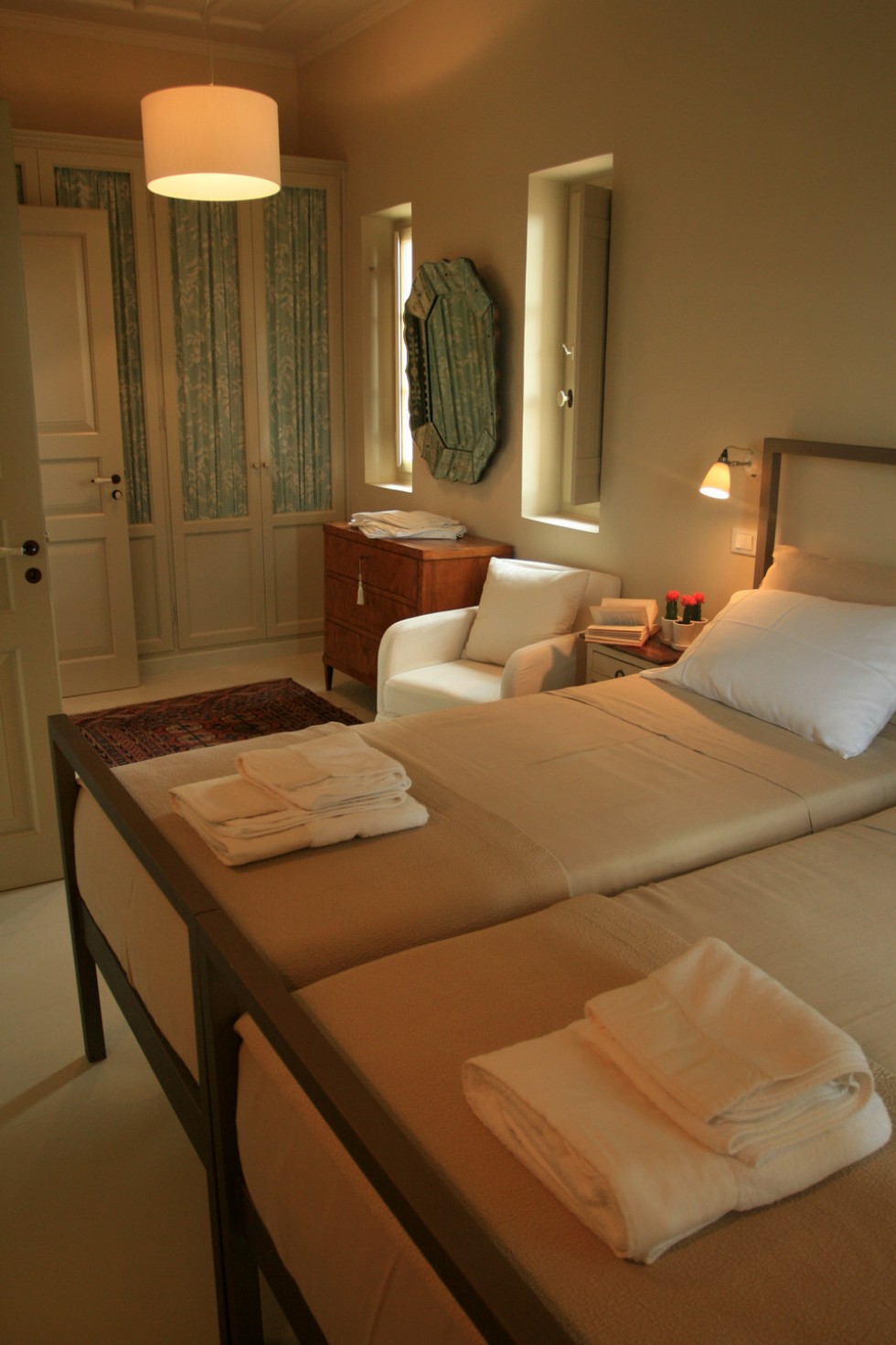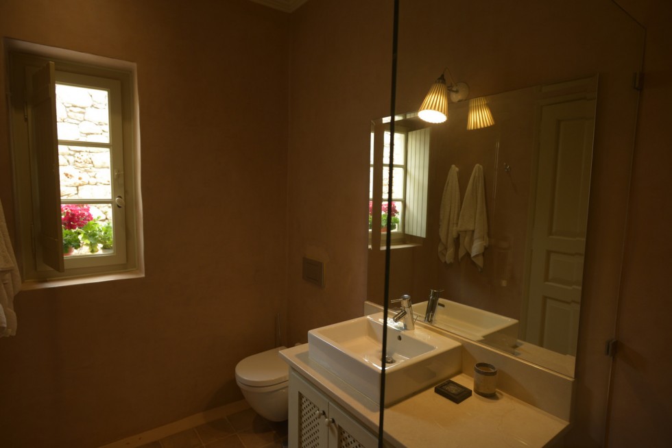 Όλα τα υλικά είναι φυσικά. Οι μυρωδιές και τα χρώματα είναι απαλά, γήινα. Τα στρωσίδια είναι από λινό αεράτο ύφασμα, τα πόμολα σιδερένια ή πορσελάνη. Τα μπάνια είναι τσιμεντοκονία με χρωματιστά πλακάκια, όπως στην αυλή της γιαγιάς.